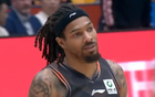 库里赛前热身秀了一记单臂暴扣膝盖看上去是完全没事了
